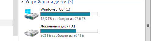 Пример моего системного диска. Пока места достаточно, через, приблизительно, месяц места на нем останется меньше 2гб.