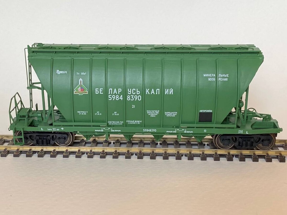 Вторая завершенная модель хоппера для перевозки минеральных удобрений 19-3116-04 в ливрее Беларуськалия, выполненная в масштабе 1:87 из набора для самостоятельной сборки производства Дмитрия Агапкина. Обе модели делались по одному и тому же прототипу, с одинаковыми номерами и одинаковыми вариантами окраски. Обе модели выполнены в полочном варианте исполнения без каких-либо намеков на следы эксплуатации или эффекты старения. Между собой модели ничем не отличаются, кроме, разве что, индивидуального номера. Ранее опубликованная модель имеет номер 127, этот вагон несет номер 128. Модель практически целиком изготовлена методом 3D печати, немного разбавлена латунными кусочками проволоки, которые пошли на поручни, оси запорных механизмов, точки и т.д. Тележки также напечатаны из фотополимера, снабжены нем-шахтами для установки сцепок (будут установлены накидные петли) и колесгыми парами Evemodel. Понравилась модель? Напишите в комментариях свое мнение и не забудьте поставить лайк и подпис