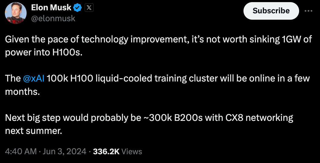Илон Маск пообещал потратить около 9 миллиардов долларов на покупку 300 000 чипов Nvidia B200 для xAI к следующему лету