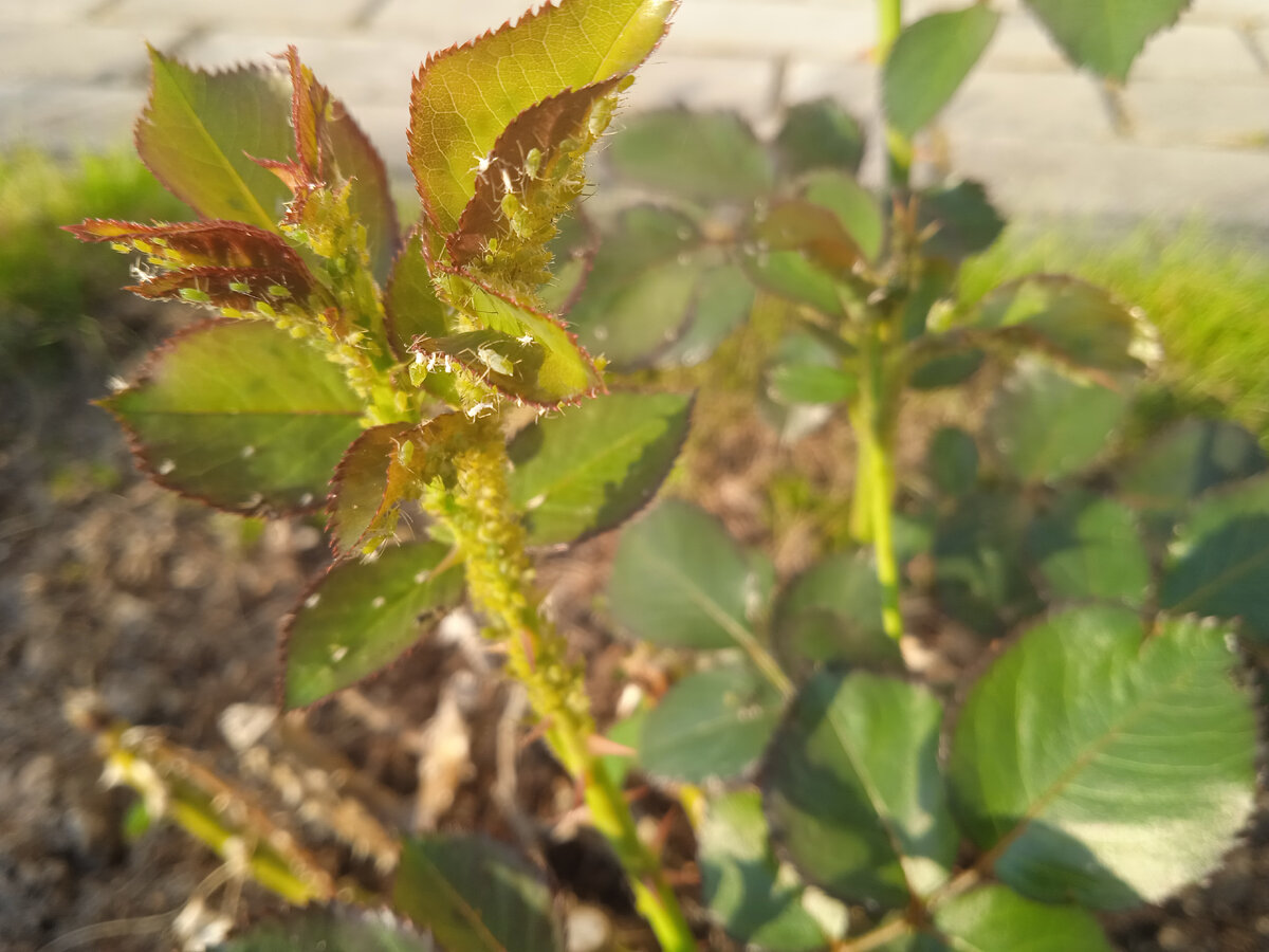 Привет друзья! На наши розы напала тля, ей очень нравятся молодые побеги. Тля в течение многих лет посещает наш дачный участок и избавиться от нее навсегда невозможно. Тля самый распространенный вредитель зеленых насаждений садов и огородов. Если с ней не бороться, то растение замедляет свой рост и может погибнуть, так, как тля питается соком растений и является переносчиком вирусных и грибковых заболеваний. Тля практически всеядна и может нанести вред овощным культурам, плодовым деревьям, кустарникам и цветам. Под молодыми листочками и на побегах, при поражении тлей вы обнаружите скопление темных (черных) или зеленых мелких насекомых. Листики растений и бутоны цветов становятся липкими и покрываются белым налетом. Со временем листы скручиваются, а бутоны отпадают. Что самое неприятное – везде, где есть тля, появляются муравьи. Существует множество методов борьбы с тлей. Самое простое, смывать тлю с растений струей воды, но делать это нужно постоянно. Можно посадить на участке лаванду