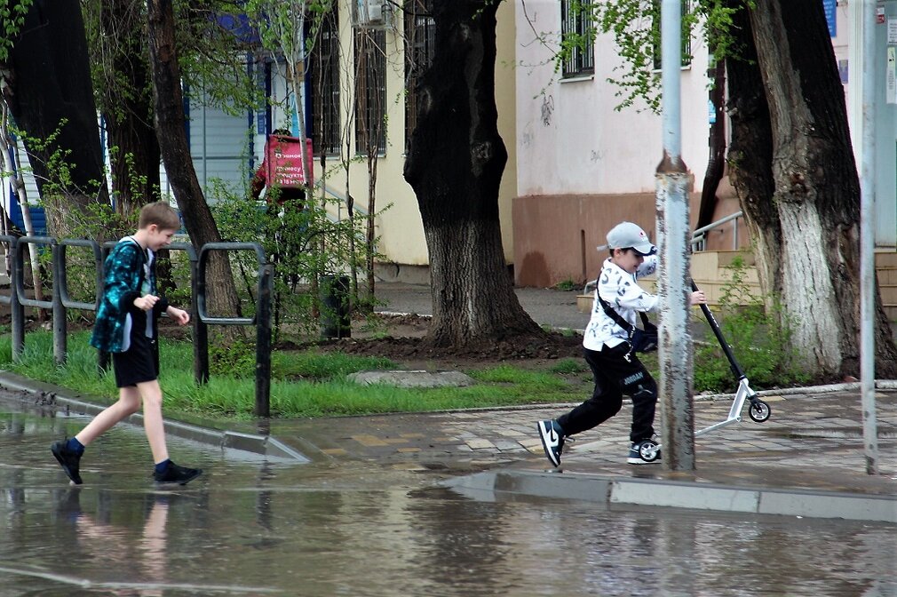 Столь неожиданной для начала лета погоды в Астрахани синоптики не обещали. Наши земляки приготовились к лютой жаре и традиционным июньским атакам мошки. Но планы «небесной канцелярии» поменялись… Первый летний день начался с дождя, который внёс коррективы в культурную программу мероприятий, приуроченных ко Дню защиты детей, запланированных на открытом воздухе. Гром и молнии позднего вечера воскресенья озадачили многих астраханцев. Сегодняшний ливень стал очередной неожиданностью для настроенных пережить любую жару астраханцев. Стихия обещает бушевать до 16 часов. В целом на этой неделе нас ждёт солнечная, но ветряная погода с температурой днём +32. Осадки вернутся 7 июня. Как бы то ни было, но сегодня многие астраханцы пожалели, что не прихватили из дома зонт или дождевик.