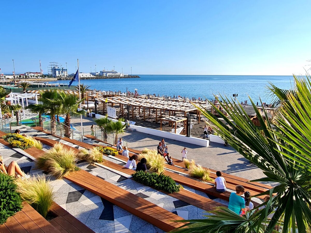 Буквально вчера я поделился с вами, дорогие читатели и подписчики, моим свежим обзором по пляжам в центре Сочи на промежутке между Цирком и Морпортом. Прочитать обзор можно здесь! А сегодня хочу рассказать и поделиться фото с пляжа Ривьера, открытого 1 июня. Согласно сообщениям СМИ, в реконструкцию пляжа и набережной инвестировали свыше 6 млрд рублей! Ну что, начнем?! А начать я предлагаю издалека - как раз оттуда, откуда я сам шел пешком в сторону пляжа Ривьера и одноименной набережной - с улицы Навагинской, нашего местного Арбата, самой популярной сейчас пешеходной улицы в центре Сочи. Для меня это одна из самых любимых улиц в Сочи, я по ней стараюсь пройти практически ежедневно, причем она мне нравится и рано утром, и в самый разгар дня, и, конечно же, улица очень симпатично выглядит в вечернее время... После Навагинской я свернул на ул. Парковую, быстро дошел до пешеходного моста через реку Сочинка и уже оттуда вышел на новую набережную, которая начинается буквально сразу за больш