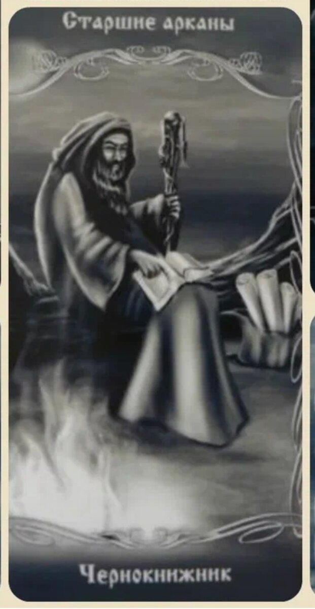 Мудрый полководец начинает битву, только если он уверен в успехе. Неудачник же сперва вступает в бой и только потом задумывается, как победить. Вам, чтобы обезопасить себя, близких и ваш дом нужно понимать, чем живёт ваш соперник/соперница. Думайте про вашу ситуацию и принимайте необходимую информацию. В расклад пришла карта ЧЕРНОКНИЖНИК. Странник, преклонного возраста, изучает древние манускрипты. Он облачен во все черное, на его голове капюшон, отблески пламени костра падают на его седую бороду. Мужчина находится в лесу и сидит на срубленном дереве перед костром, в нем он сжигает книги, которые не несут знания. Рядом с ним стоит сумка с торчащими из нее свитками. В руке странник держит посох, который представляет из себя обтесанную палку с магическими оберегами. Оберегают загаданного человека магические Силы или Сила, которые благоволят стихии Огня, который может уничтожить все вокруг, чтобы достигнуть своей цели. Свет и тепло от огня можно использовать, как во благо, так и во