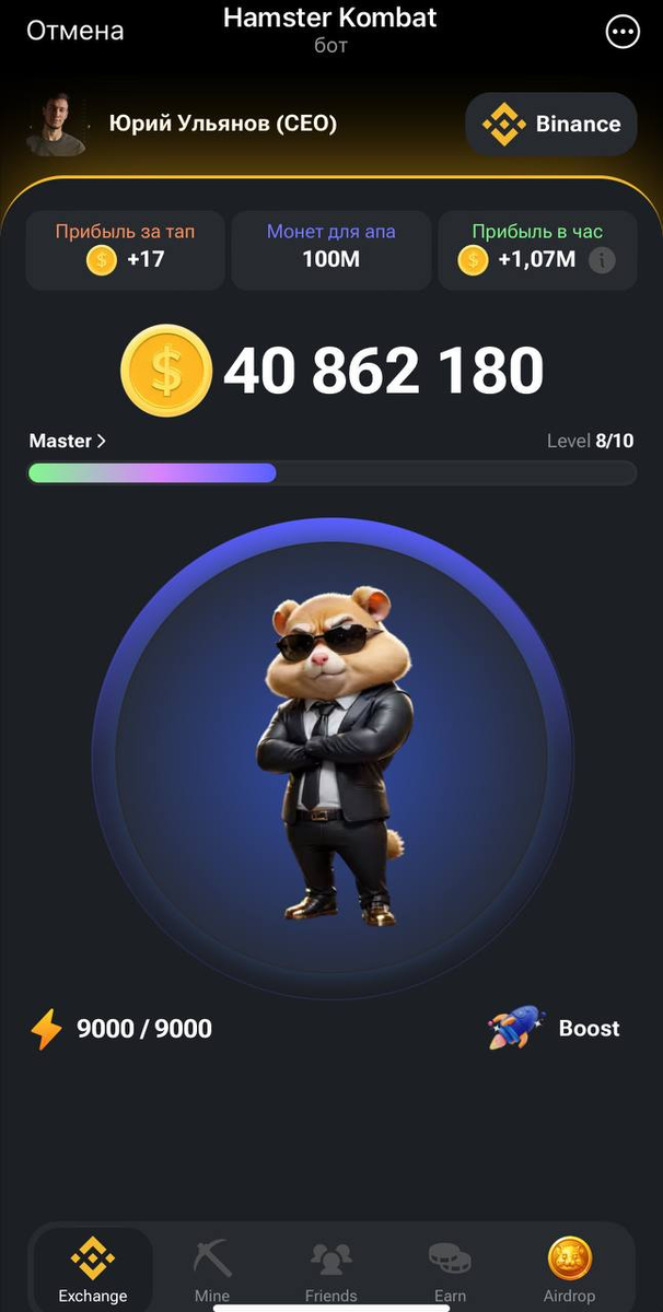 Во вкладке "Boost" можно качать силу(количество монет, которое начислят за одно нажатие на экран) и энергию(количество энергии, которое автоматически пополняется).