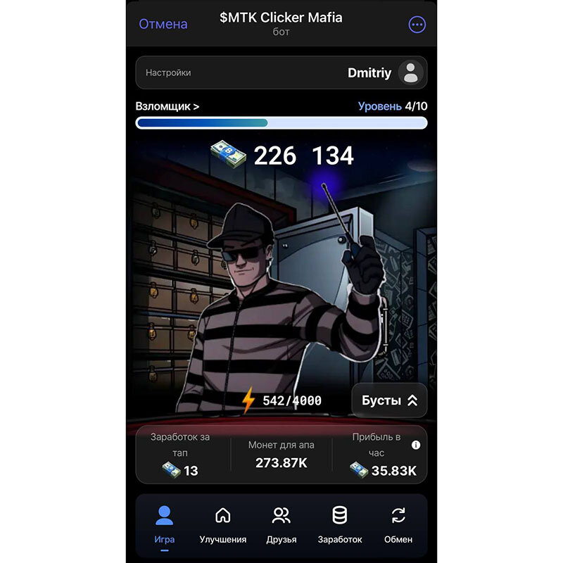 MTK CLICKER MAFIA - кликер от казино METATOKENS, где каждый игрок становится его совладельцем. Аналог Ноткоин