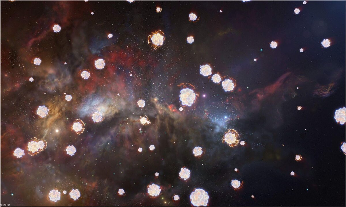 Когда появилась газовая туманность, родились первые звезды, и Вселенная загорелась повсюду. В то же время под действием силы тяжести эти звезды собираются в скопления, и постепенно формируется галактика. По началу, масса звезд первого поколения была чрезвычайно огромной. Из-за обилия элементов масса большинства звезд может превышать массу Солнца в сотни раз, но продолжительность их жизни очень коротка. Мы знаем, что чем больше масса звезды, тем интенсивнее будет ее внутренняя ядерная реакция, которая расходуется чрезвычайно быстро. Как только топливо израсходовано, ядро больше не может продолжать ядерный синтез для выделения энергии, что в конечном итоге нарушает гравитационный баланс звезды и погибает при взрыве сверхновой. Вот тогда, продолжительность жизни звезды увеличивается. Первому поколению звезд всего около миллиона лет. После взрыва сверхновой оставшийся неизрасходованный водород в оболочке звезды и тяжелые элементы, образующиеся в ядре, будут выброшены в космос сильным взр