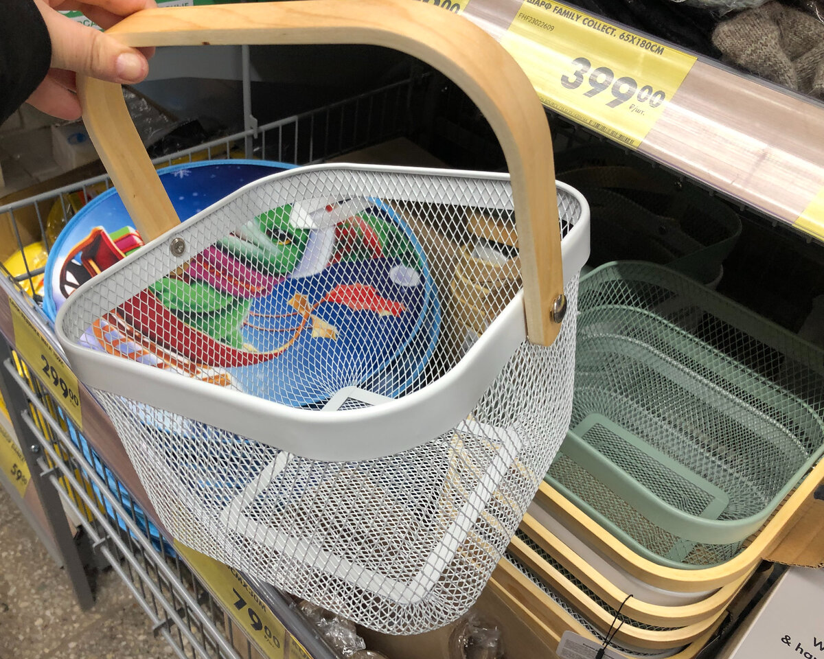 Одной из моих любимых новинок являются металлические корзины с деревянной ручкой. Они имеют два доступных цвета и размеры 25x24x17,5 см. Изготовлены в Китае и стоят всего 399 рублей. Они отлично подойдут для хранения различных предметов и добавят стильности вашему интерьеру.