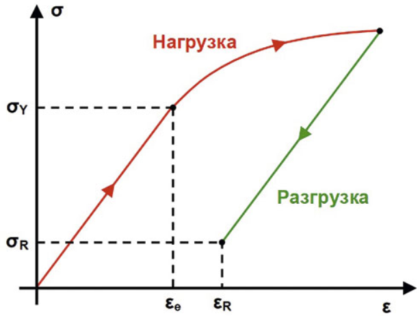 Библиотека законов деформирования позволяет учесть практически любые нелинейные свойства материала и её можно пополнять.