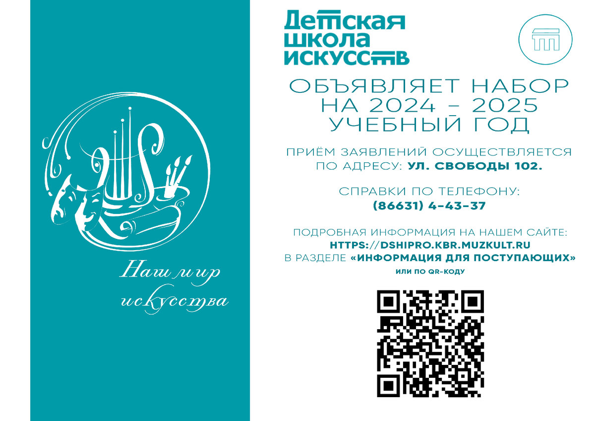 «...В былые времена детей дворян обучали грамоте, арифметике, языкам, танцам и музыке. Обучение игре на музыкальных инструментах считалось показателем хорошего воспитания...» ‼ВНИМАНИЕ, НЕ УПУСТИТЕ СВОЙ ШАНС‼ НАБОР В ПЕРВЫЙ КЛАСС: I. Дополнительные предпрофессиональные общеобразовательные программы (далее ДООП) по специальности: ДООП «Фортепиано» - срок обучения 8 (9) лет – возраст детей от 6,6 лет до 9 лет включительно; ДООП «Народные инструменты» (баян, аккордеон, гитара, домра, балалайка) – срок обучения 8 (9) лет – возраст детей от 6,6 лет до 9 лет включительно; - срок обучения 5 (6) лет – возраст детей от 10 до 12 лет; ДООП « Духовые и ударные инструменты» (флейта, саксофон, труба, кларнет; барабан, доул) – срок обучения 8 (9) лет – возраст детей от 6,6 лет до 9 лет включительно; - срок обучения 5 (6) лет – возраст детей от 10 до 12 лет; ДООП «Струнные инструменты» (скрипка) – срок обучения 8 (9) лет – возраст детей от 6,6 лет до 9 лет включительно; ДООП «Хоровое пение» – срок об