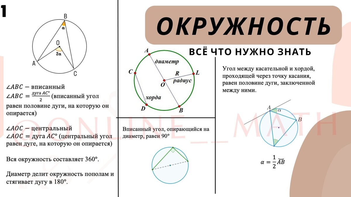 ВСЕ ЗАДАНИЯ НА ОКРУЖНОСТЬ КОТОРЫЕ МОГУТ ПОПАСТЬСЯ НА ОГЭ 2024 ПО МАТЕМАТИКЕ