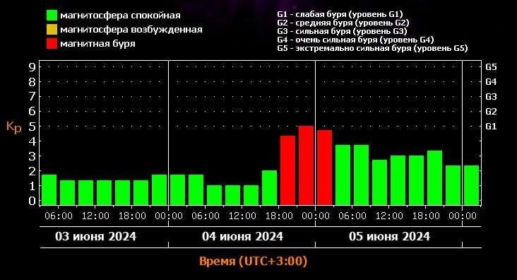 По данным специалистов, сегодня, 4 июня, на нашей планете произойдёт мощная магнитная буря. Причиной этому стала вспышка на Солнце, в результате которой произошёл выброс плазмы, которая сейчас направляется к Земле. Это может привести к сбоям в работе электроприборов и ухудшению самочувствия у метеозависимых людей. Рекомендуется следить за своим состоянием и по возможности ограничить физические нагрузки.