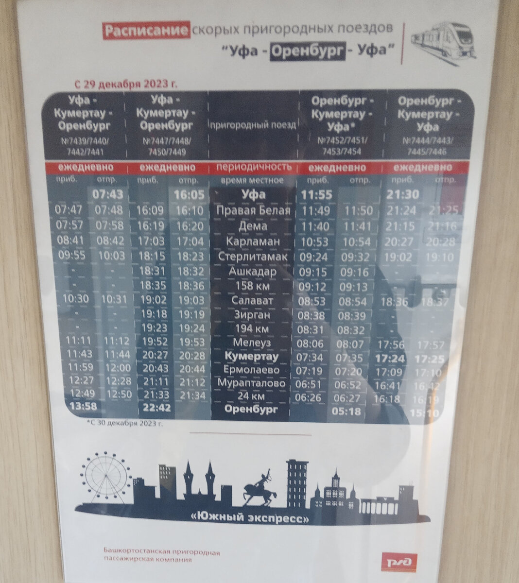 О самом поезде скажу что, лучше в разы чем наш Башавтотранс с убитым автопарком который ездит из нашего города и обратно, лучше чем частники, да и в целом жд это не трасса, пробок нет, соответственно нет рывков и сильной качки, в поезде есть кондиционеры, новые сиденья, часть вагона со столиками (это прям классно когда едешь с детьми, поэтому лучше выбирать начало вагона, по крайней мере касательно 1 и 3 вагонов), вагонов всего 3, примерно по 70 мест в каждом. В 1 и 3 вагонах есть туалет. Сумки можно положить на верхние полки для багажа, тяжелые под сиденье. Коляски и велосипеды люди оставляли в тамбуре. Мы ехали и туда и обратно в первом вагоне, туда в начале вагона, обратно в конце, последний вариант не очень. В 3м вагоне говорят есть что-то вроде колясочной, но мы там не были. Места есть по 2 и 3 сиденья рядом.