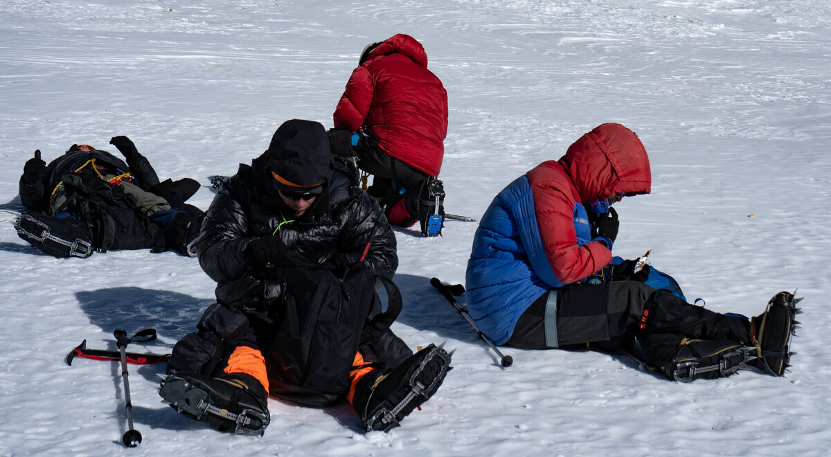 А еще по большому секрету мне шепнули, что уже после первого акклиматизационного выхода опытный гид практически на 99% знает, кто из группы точно не зайдёт на Вершину. Но они об этом обычно помалкивают, потому, что ничего личного, просто бизнес: если человек знает, что шансов зайти у него нет, он не возьмет в аренду высокогорную одёжку, кошки, ледоруб и прочую альпинистскую приблуду. (К слову, цена аренды всей одежды и обмундирования может быть в 3 раза выше, чем стоимость самого тура, если приехать тупо в шортах, с банкой пива и всё-всё-всё брать в аренду). А ещё один из гидов как на духу сказал мне, что я вхожу в категорию тех, кто вроде как не должен был дойти, а дошёл))). Ибо большой рост, большая масса и возраст 40+ не лучший starter pack для юного альпиниста.