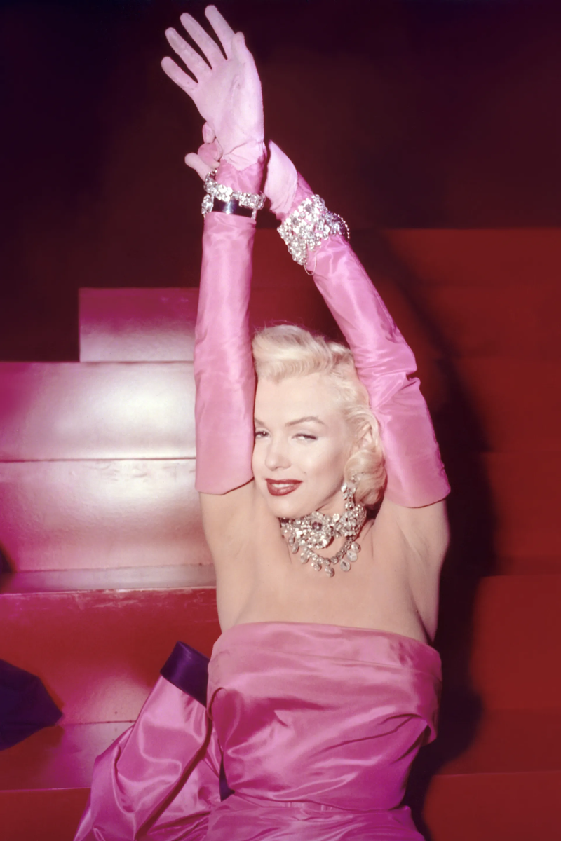 В 1953 году Мэрилин Монро продемонстрировала новый уровень своего статуса секс-символа, сыграв роль Лорелей Ли в фильме «Джентльмены предпочитают блондинок». Для исполнения заглавной песни фильма «Бриллианты — лучшие друзья девушек» она появилась на экране в потрясающем образе.Платье цвета фуксии, созданное художником по костюмам Уильямом Травиллой, было дополнено длинными перчатками и сверкающими бриллиантами. Смелый розовый наряд с открытыми плечами на фоне карминно-красного цвета стал настоящим произведением искусства. А взгляд звезды, полный дерзости и уверенности, добавлял образу особую изюминку.Эта сцена стала символом красоты и женственности, а образ Мэрилин Монро навсегда остался в памяти зрителей как один из самых ярких и запоминающихся образов в истории кинематографа.