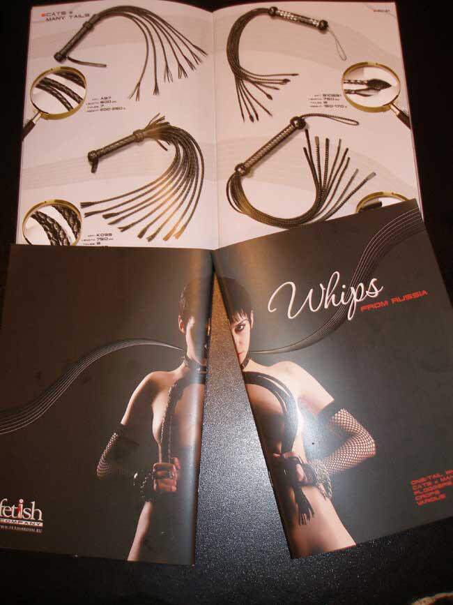 Как ни странно, но техника и культура флагелляции и, соответственно, изготовление «правильных» плеток, оказалось развито только в России. Потому экспорт русских плеток под брендом «WHIPS FROM RUSSIA» оказался востребованным на Западе и выгодным для нашей компании В 2003 году была предпринята первая вылазка на международный рынок секс-индустрии с новоиспеченным брендом плеток «WHIPS FROM RUSSIA». Выступили мы на выставке «VENUS» в Берлине. Стенд нал был первым российским стендом в истории выставки и был оформлен в цветах российского триколора. К сожалению, наш дебют прошел для западной секс-индустрии совершенно незамеченным. Редкие любопытствующие посетители выставки интересовались ценам и узнав, что плетки стоят от 100 евро цокали языком и уходили. Но мы не сдались и на следующий год опять приехали со своим девайсами. И опять потерпели фиаско – многочисленные толпы посетителей роились по всей выставке – везде, кроме нашего стенда. И только на третий наш приезд в Берлин, местные темат
