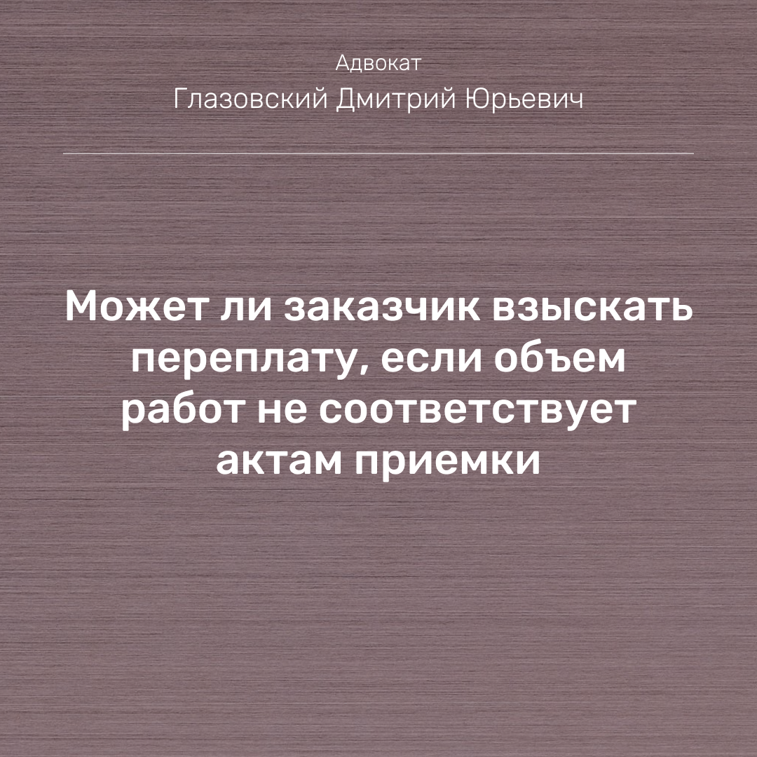 Приведу пример конкретного дела – заказчик по исполненному договору строительного подряда обратился в суд к подрядчику о взыскании неосновательного обогащения, так как контролирующим органом в отношении заказчика проведена проверка законности расходования бюджетных средств по контрактам на выполнение работ, по итогам которой выявлены факты невыполнения предусмотренных контрактами объемов работ. При этом невыполненные объемы работ были приняты и оплачены заказчиком.