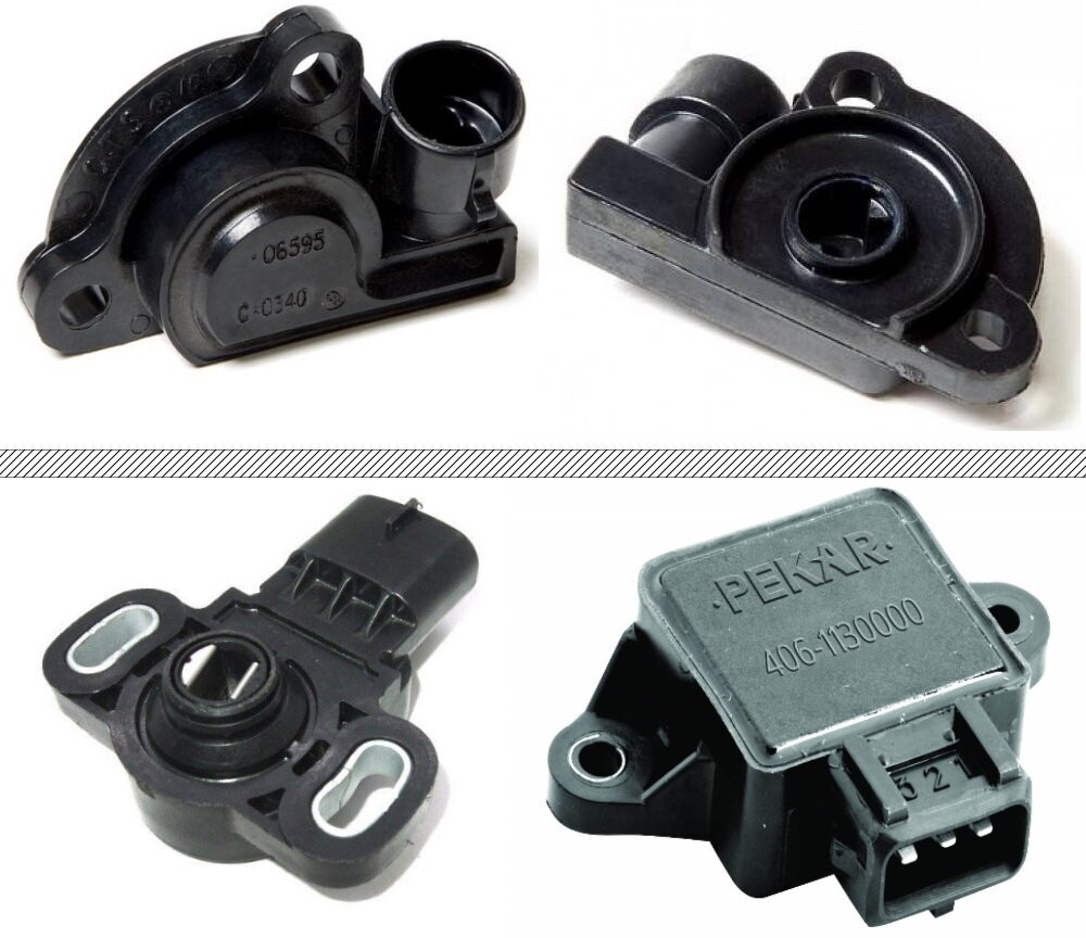 Датчик представляет собой простой электрический компонент — резистор. При повороте оси датчика изменяется его сопротивление. Он крепится на вал заслонки и вращается вместе с ней.