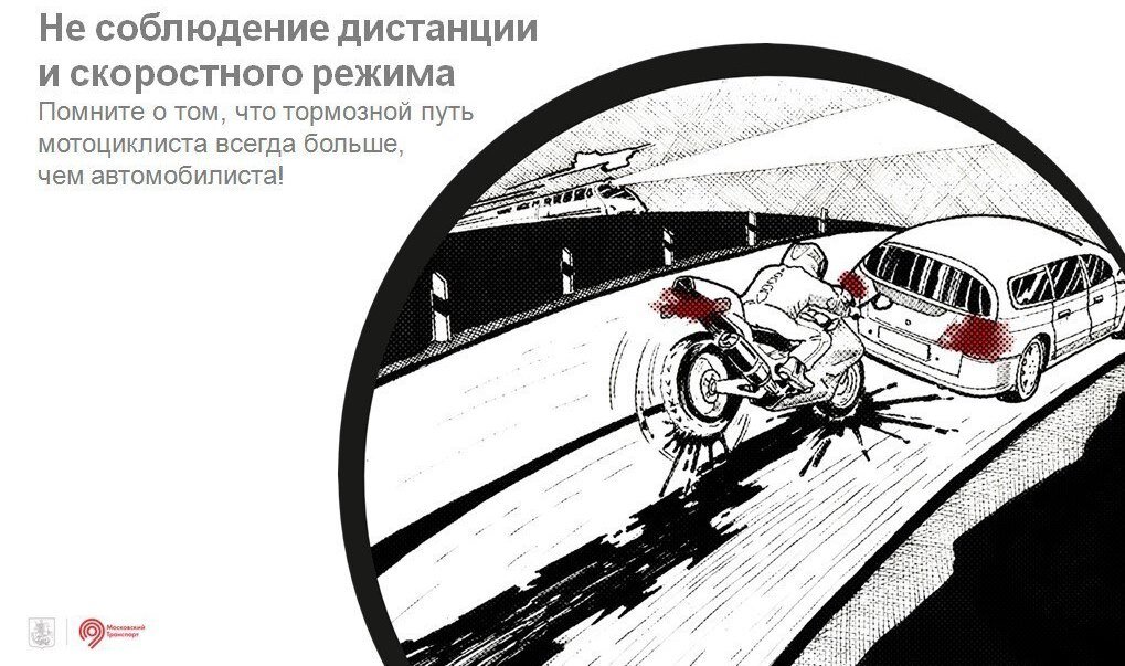 Разбираем типовые ситуации на дороге, грозящие мотоциклисту потенциальной опасностью. Мне дали замечательный совет по безопасности в автошколе, ещё когда получал права на автомобиль. Держи дистанцию! Это простое правило решает сразу огромное количество потенциальных проблем. У вас есть время среагировать. В среднем мотоцикл тормозит хуже автомобиля. И дело тут даже не в качестве тормозов. И не в законах физики. У мотоцикла всего два колеса, и он весь построен на балансе. Там где автомобиль при резком торможении уйдёт в занос, мотоцикл упадёт. Или сделает стоппи. Баланс мотоцикл чувствителен к резкому торможению, а значит нужно время на реакцию. Это позволит тормозить контролируемо. Вы видите впереди себя дальше и больше. Это позволяет лучше читать дорожную ситуацию. Вы можете заранее перестроиться или начать снижать скорость. Не надо бояться, что кто-то встроится в ваш ряд, если перед вами много места. Большинство адекватных водителей едут в потоке и в нужном для них ряду. Они не буд