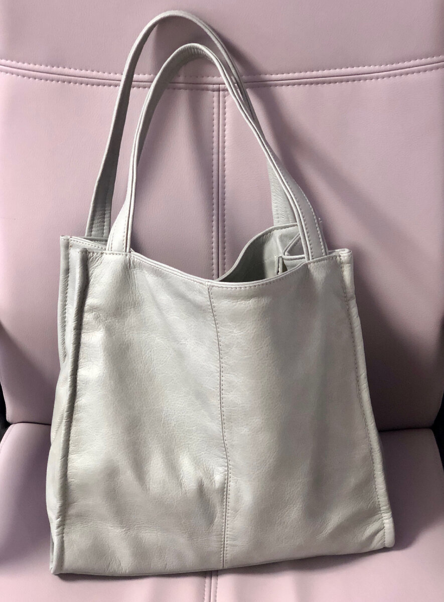 Согласитесь девочки, что лучше сумки может быть только новая сумка. А для полного женского счастья их должно быть две. Так у меня и получилось на этот раз: жемчужный шопер и пудровая «итальянка». У меня уже есть винный шоппер и бордовая «итальянка». Казалось бы, зачем повторяться? Здесь требуется пояснение: 1) жемчужный шопер (он именно жемчужный, не просто серый) отличается мягкостью кожи, легкостью и прошитыми ручками по краям. И если винный шопер хорош для поездок (много в себя вмешает), то этот у меня на каждый день. Уже опробовала. Радует! 2) А «итальянок», девочки, много не бывает. Она удобная, вместительная и при этом не создает вид объемной. Это просто моя любовь! Новая сумка на фото кажется бежевой, но она очень нежная, как пудра. Для летнего дня. Я бы себе 3-ю «итальянку» купила в другом цвете. Голубую, например! Так что только очередное мое спасибо «Ever» за настроение и качество! - Ваша! С Вами! 👜❤️