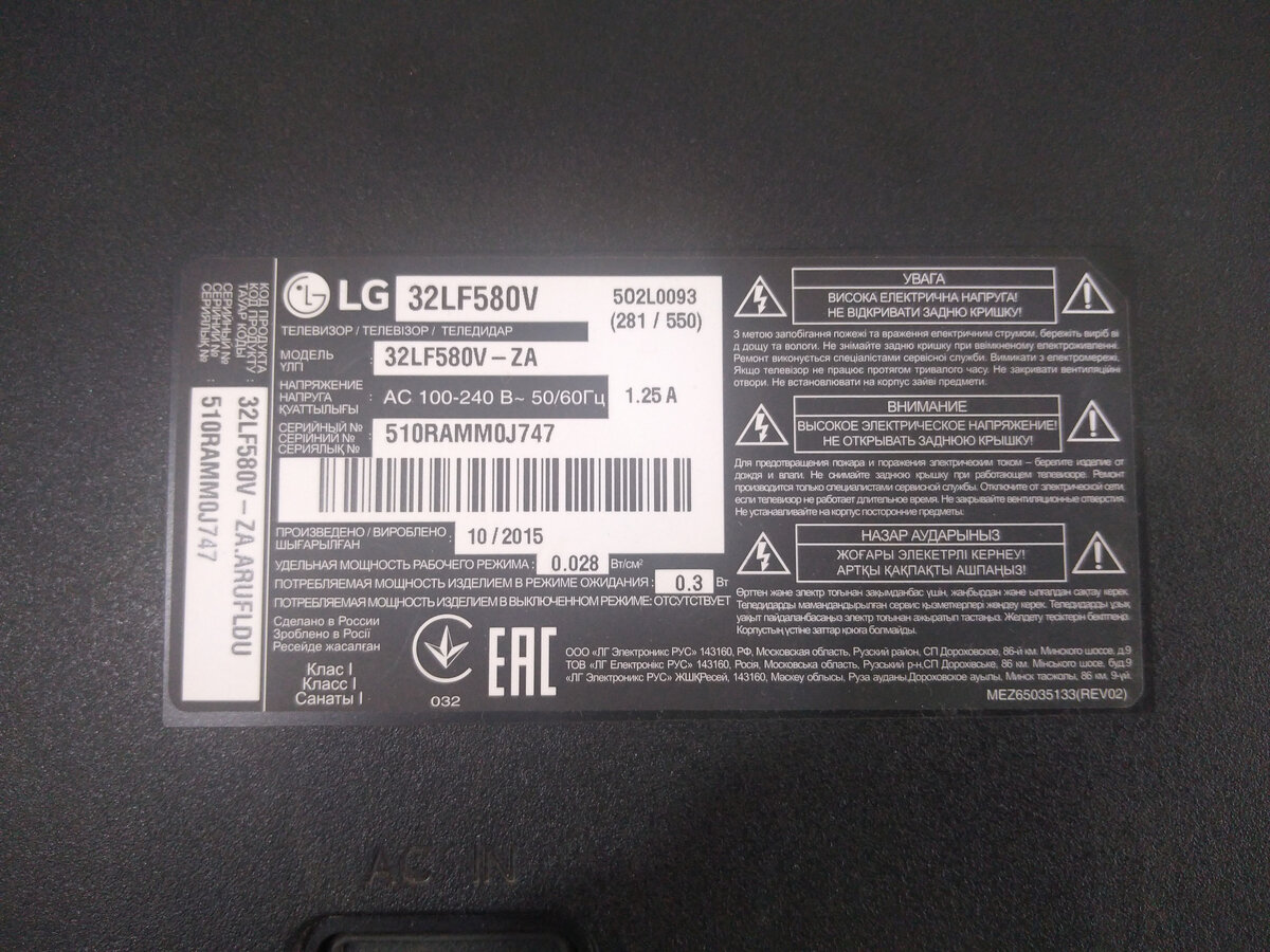 LG 32LF-580V висит на заставке.(Замена H26M31003GMR на THGBMAG5A1JBAIR)