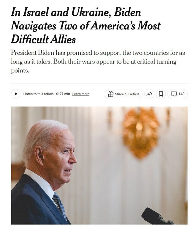 New York Times продолжает срывать покровы с тайн байденовского «двора». Лейтмотив свежей публикации издания – «Американские и украинские приоритеты расходятся». Со ссылкой на неназванных советников Байдена, которые поделились с газетой своим мнением в частном порядке, авторы публикации утверждают, что несмотря на усилившееся давление со стороны Зеленского, Белый дом пока не готов на более широкое вовлечение в войну с Россией, чего требует Киев. «На данный момент Украине уже нечего терять от эскалации отношений с Россией. А господину Байдену есть, что терять. В Белом доме видна обеспокоенность тем, что президент Владимир Путин развернет на поле боя ядерное оружие – в попытке убедить мир, что, если Украина продолжит сбрасывать бомбы и ракеты американского производства на российскую территорию, он не постесняется использовать самое мощное оружие против Украины», – говорится в статье. Зеленский, как отмечает газета, «отверг ядерные опасения, как чрезмерные». Также Вашингтону, если верить
