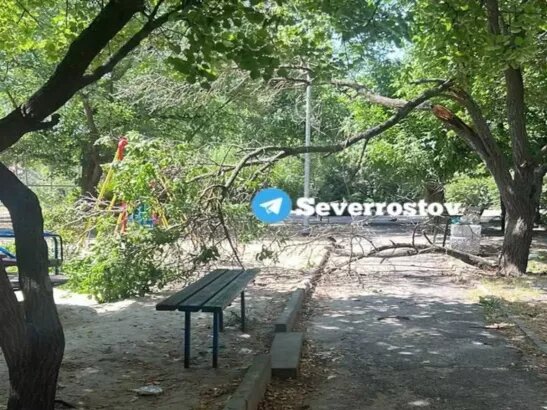 В Ростове огромные ветки дерева упали на детскую площадку. Инцидент произошел 4 июня на Северном, в районе дома № 19 по проспекту Космонавтов.