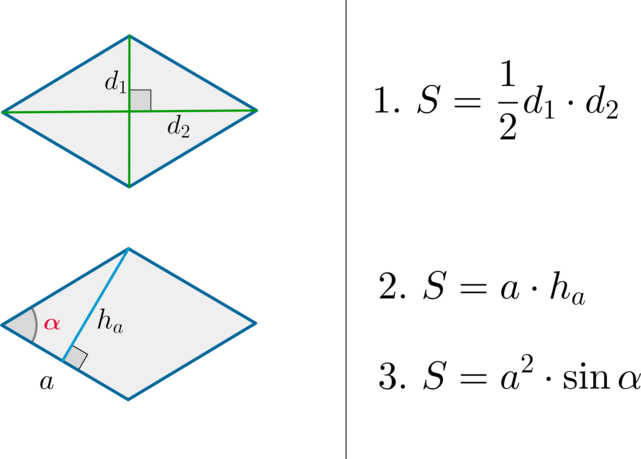 Ромб — это четырехугольник, все стороны которого равны. Площадь ромба можно вычислить различными способами, но одним из самых распространённых и удобных методов является использование диагоналей. В данной статье мы рассмотрим теорему о площади ромба через его диагонали, приведём доказательство этой теоремы и решим несколько задач для закрепления материала. Теорема (площадь ромба через его диагонали) Теорема: Площадь ромба равна половине произведения его диагоналей. Пусть d1 и d2 — диагонали ромба. Тогда площадь S ромба можно найти по формуле: S=1/2×d1⋅d2 Доказательство Для доказательства теоремы воспользуемся свойством диагоналей ромба. Диагонали ромба пересекаются под прямым углом и делят друг друга пополам. Пусть длины диагоналей AC=d1 и BD=d2. Тогда длины отрезков AO, BO, CO и DO будут равны d1/2 и d2/2. 4. Площадь треугольника △AOB можно найти по формуле площади прямоугольного треугольника: S△AOB=1/2×AO×BO=1/2×d1/2×d2/2=1/8×d1×d2 Так как все четыре треугольника