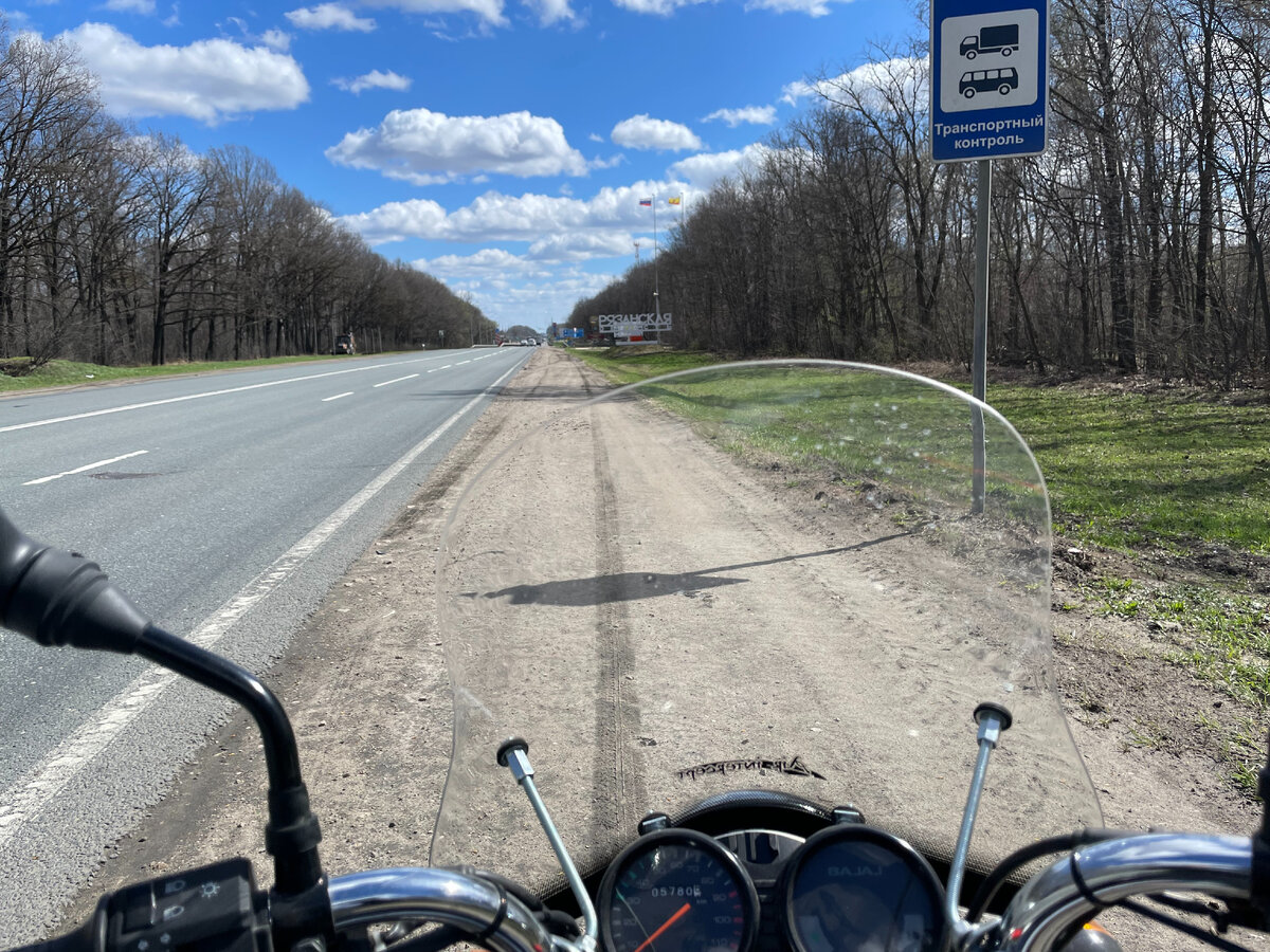 Потолкавшись по Москве, выдвигаюсь в сторону Рязани. Погода солнечная, температура +6. Установленный зимой ветровик от «Альфы» отрабатывает свою стоимость на отлично, китайские выносы руля позволяют сидеть ровнее, однако, при сильных нагрузках, проворачиваются в штатных стойках (за всю поездку это случилось один раз, когда на дне лужи оказалась глубокая выбоина).