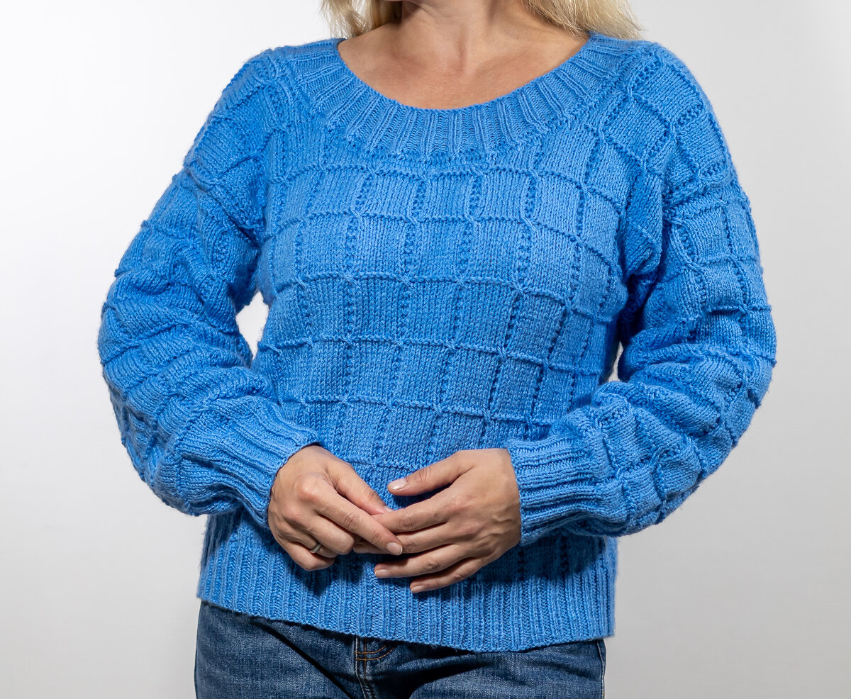 Подробное описание вязания летнего легкого свитера оверсайз с фигурными квадратами!