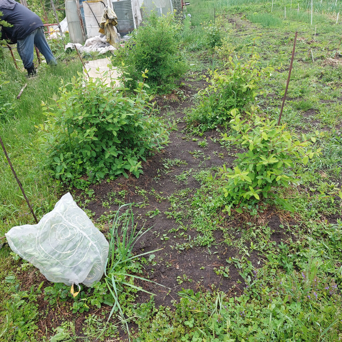 Всем привет! Особо как-то и не пишется, потому что заботы по саду честно уже надоели: холодно, сыро, растет без конца трава при такой влаге и получается, что часто нужно полоть хотя бы тяпкой. Ну и косить постоянно. А когда участок большой, то это вообще сложно. В общем, пока что не дача для нас, а мы для дачи. И очень жаль, что уже много лет так. Всё пытаюсь как-то сократить всё, систематизировать, вывезти ненужное, но пока что не получается. Вот на фото наша небольшая плантация бакчарской и канадской жимолости. Уже начала приобретать формы, которые покажут нам какие из той, что будет в этом году наиболее крупная. Хорошо, что это самый простой укрыв растений просто как защита от птиц. Следить за таким укрывом не нужно. Ягоды, даже если отпадут от веточки, не упадут на землю, а окажутся в сеточке из этой органзы. Хорошо, что в Дзене нашелся такой рецепт и он мне нравится. Есть еще и сетка, тоже шторы. Возможно и сетку приобрести в магазинах. Садовая, специальная. У нас вот эта. Но з