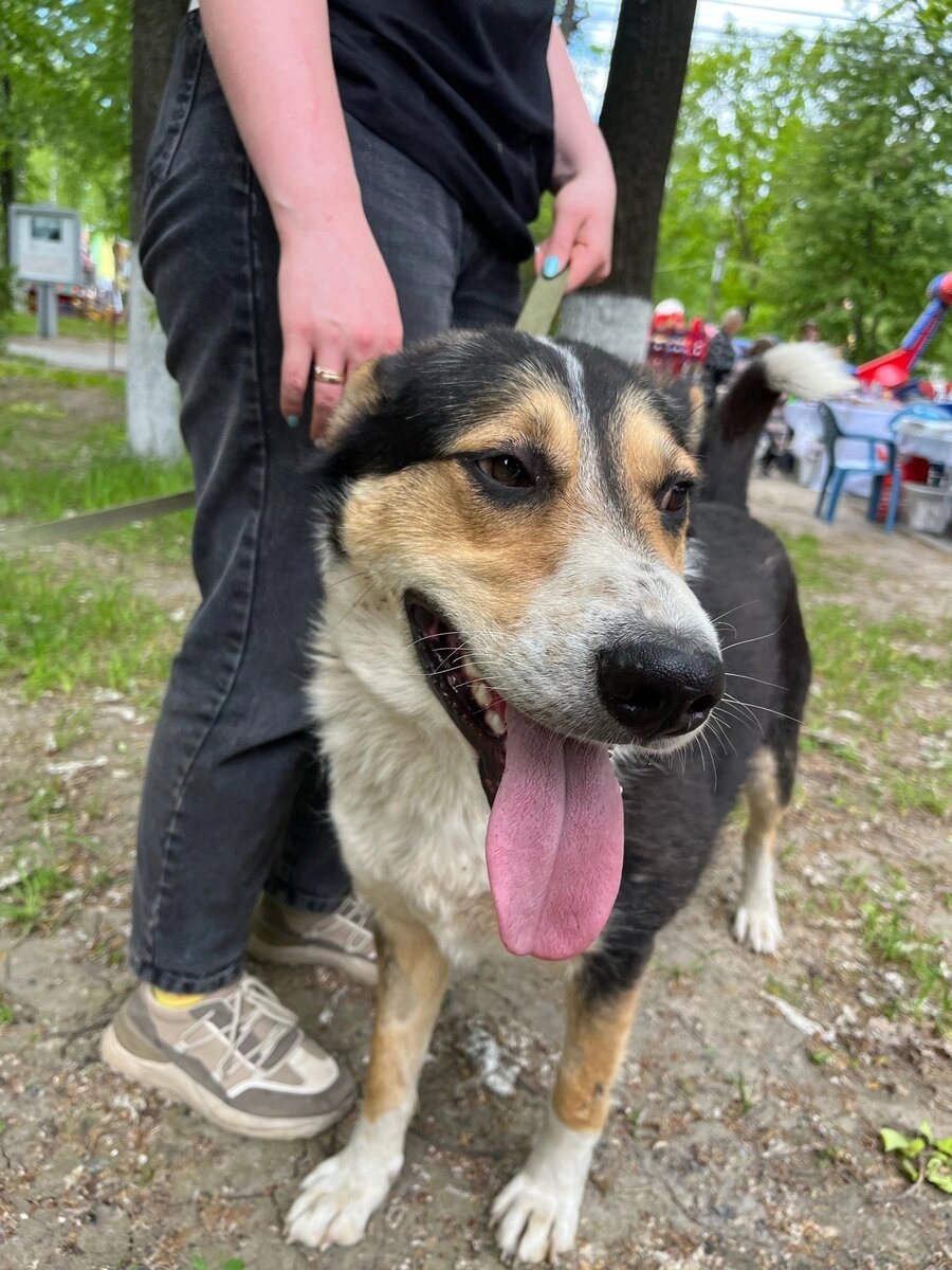 Очень весёлый и жизнерадостный. Выгул терпит, гуляет на поводке хорошо, сразу видно, что до этого жил в квартире и с ним гуляли. Но видимо теперь он не нужен прежнему хозяину, раз он так с ним поступил.