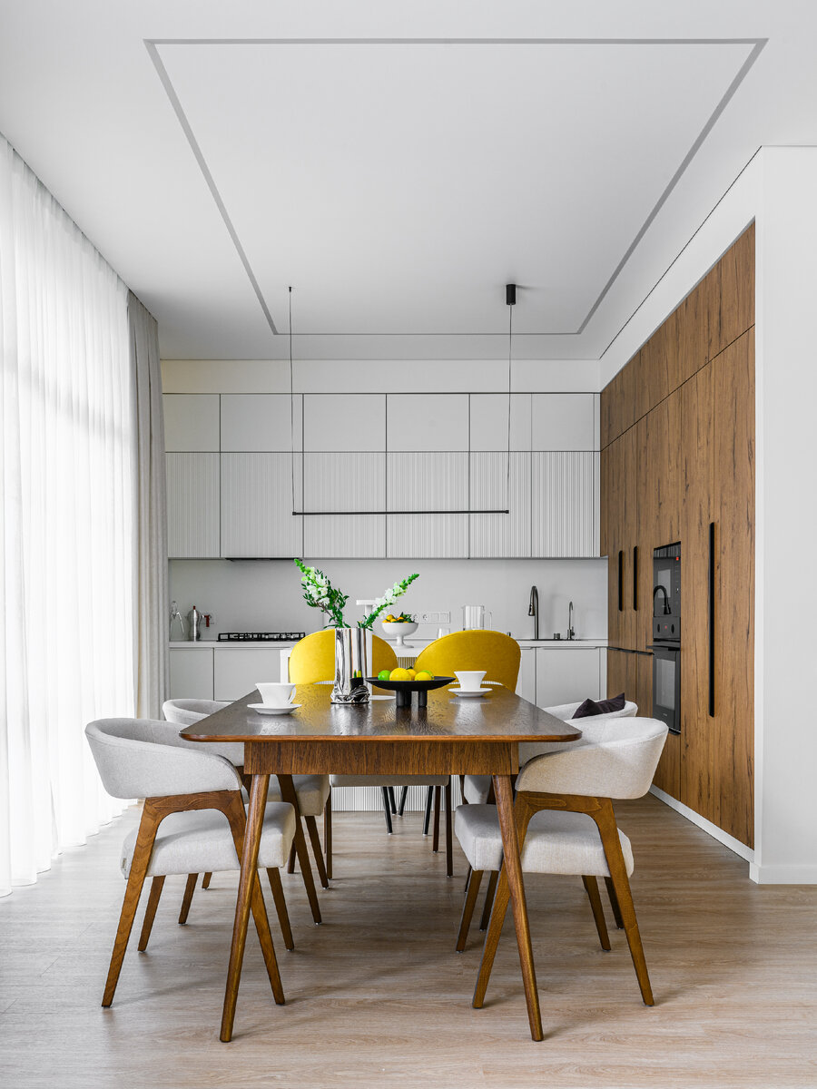 Ничего лишнего — но есть все необходимое. Таким коротким предложением можно описать готовый интерьер. Дом кажется больше за счет подобранной отделки и точно расставленной мебели. Заказчики и задачи Семья с 6-летним сыном купили готовый дом в Адыгее для себя. Они пригласили дизайнера Арину Колыганову, чтобы сделать в нем ремонт и обставить, используя площадь по максимуму. Хотелось получить современный интерьер. Планировка Дом приобрели готовым. В нем были три комнаты, ванная, кухня-гостиная. Планировку не меняли, только достроили перегородки в коридоре для встройки шкафов и в ванной для обустройства душевой. Итого, получились: спальня, детская, гардеробная-кабинет, ванная, кухня-гостиная. Отделка Выбранная концепция отвечает современному дизайну интерьера: светлые стены, оформленные однотонными обоями без рельефа (в будущем при желании их можно покрасить), акценты в виде деревянных панелей (за изголовьем кровати в спальне, в ТВ-зоне и в отделке фасадов на кухне), обои-панно с изображени