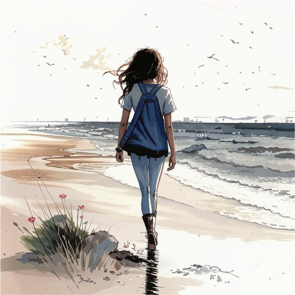 Мария шла по песчаному берегу, взгляд ее был устремлен вдаль, а лицо покрыто слезами. Она шагала медленно, словно не обращая внимания на окружающий мир.