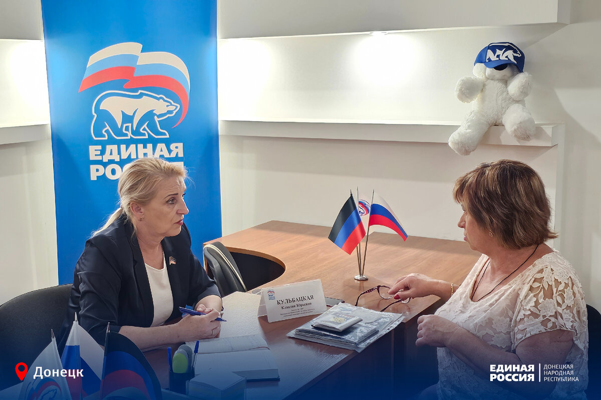 Обращаются жители Республики в региональную общественную приемную Единой России. Эта неделя приемов тематическая и посвящена вопросам материнства и детства. Вчера людей принимал депутат НС ДНР, председатель Комитета по здравоохранению, охране материнства и девства Виктор Ищенко, а сегодня жителям Республики помогала депутат НС ДНР, председатель Комитета по труду, занятости, социальной политике и делам ветеранов Клавдия Кульбацкая.