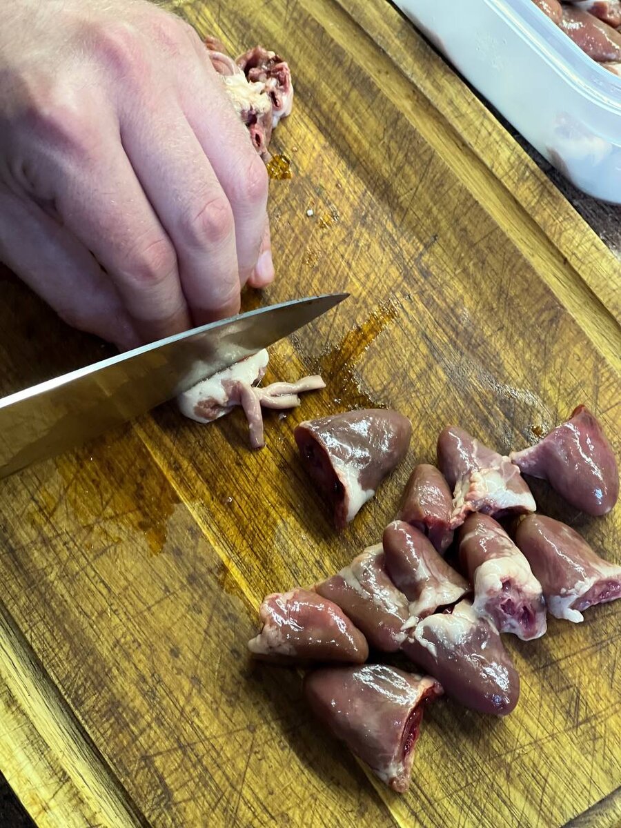 Доброго времени суток, дорогие друзья. При мариновании куриных сердечек есть несколько тонкостей, если их соблюдать, то вы получите отличное блюдо в копилку быстрых и вкусных дачных рецептов. Первое и самое главное - верхнюю часть сердечка нужно отрезать, достать все сгустки и тщательно промыть, если этого не сделать, сердечки будут горчить. Далее маринад Добавляем чайную ложку меда Что по специям? Соль, перец, копченая паприка, гранулированный чеснок - отлично подойдут Немного лимонного сока Советую мариновать не менее 5 часов в прохладном месте Нанизываем на шампур Жарим 10-12 минут на умеренном жаре Еще больше рецептов в телеграмм Cпасибо за внимание. Готовьте в удовольствие.