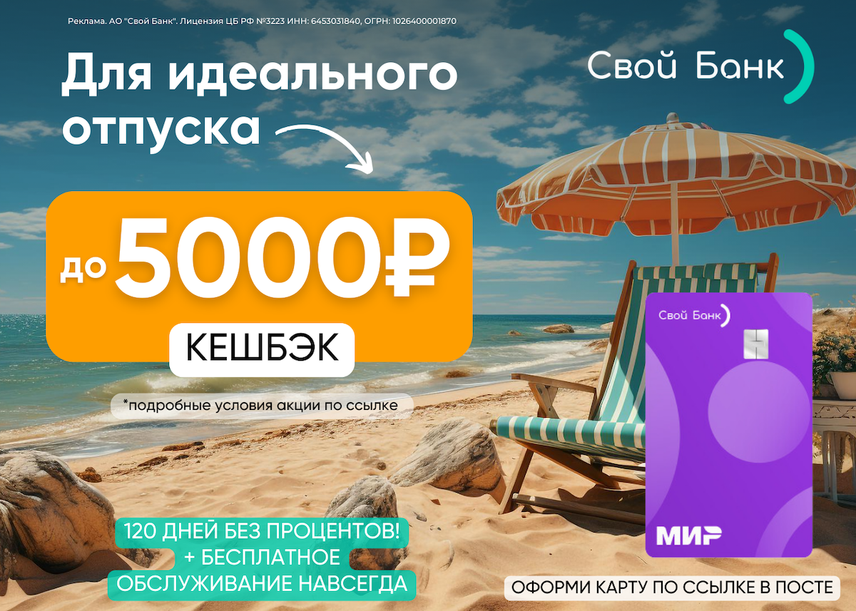 В июне проходит весьма выгодная акция от банка Свой, по которой можно получить 5000 ₽ кэшбэка рублями. Для этого нужно оформить бесплатную на весь срок действия карту Своя Кредитка по этой ссылке и тратить в первые три месяца по 10 000 ₽ в месяц. За это будет начислен следующий кэшбэк: Траты могут быть в любых категориях, кроме стандартных исключений: налоги, штрафы, казино, оплата сотовой связи, ЖКХ, страховки и т.п. Условия по карте: Я лично собираюсь оформить две карты – на себя и свою жену, чтобы лимит кэшбэка был в два раза больше. Таким образом мы получим 10 000 ₽ за три месяца. Еще раз: карту можно заказать по этой ссылке. Важно! Если вам будут предлагать в банке другую кредитную карту, которая называется «Кредитка 0%», не соглашайтесь. Несмотря на то что по ней также действует эта акция с 5000 ₽ кэшбэка, сама карта менее выгодна – у нее нет льготного периода, и по ней придется платить проценты за каждый день пользования кредитным лимитом. Подписывайтесь на мой Telegram-канал п