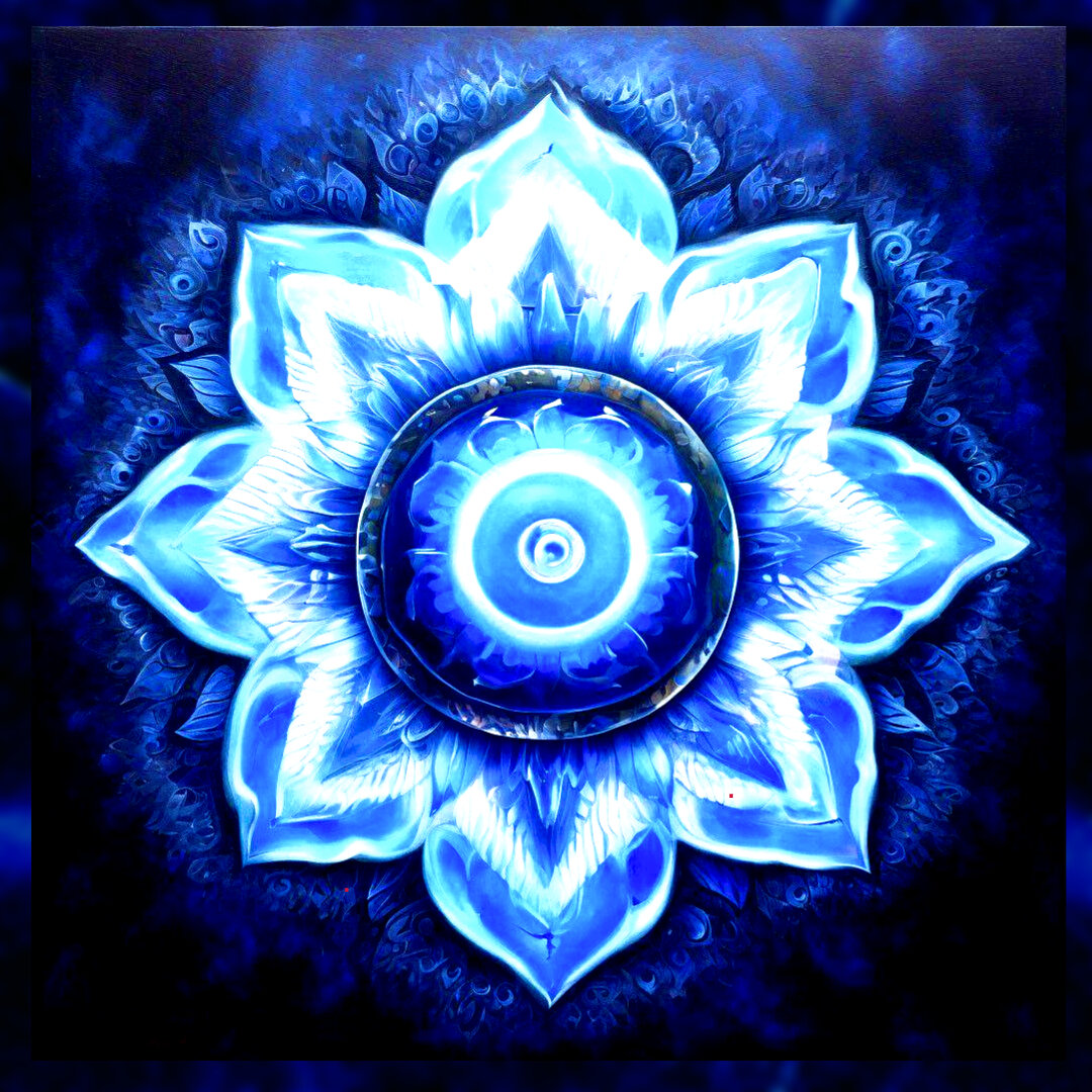 Чакра Вишуддха находится в области горла, между ключицами. Она ассоциируется с цветом голубым, хотя иногда также с фиолетовым и серебристым. Символом этой чакры является круг с 16 лепестками, в центре которого находится белый круг, представляющий чистоту и ясность. Иногда в центре также изображается шанкха (раковина), которая в индийской традиции используется как духовный инструмент и символ звука Ом – первичного звука Вселенной.