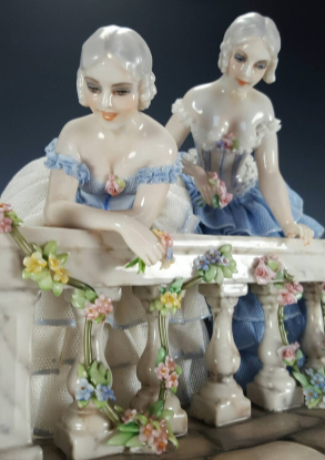 Фантазия и творчество Фабриса безграничны. Луиджи, будучи художником и скульптором в фарфоровых статуэтках смог воплотить оба своих таланта.Статуэтка из коллекции итальянского фарфора Capodimonte Luigi Fabris. Эта работа получила название ,,AL BALCONE (Балкон)" 1940-х г.