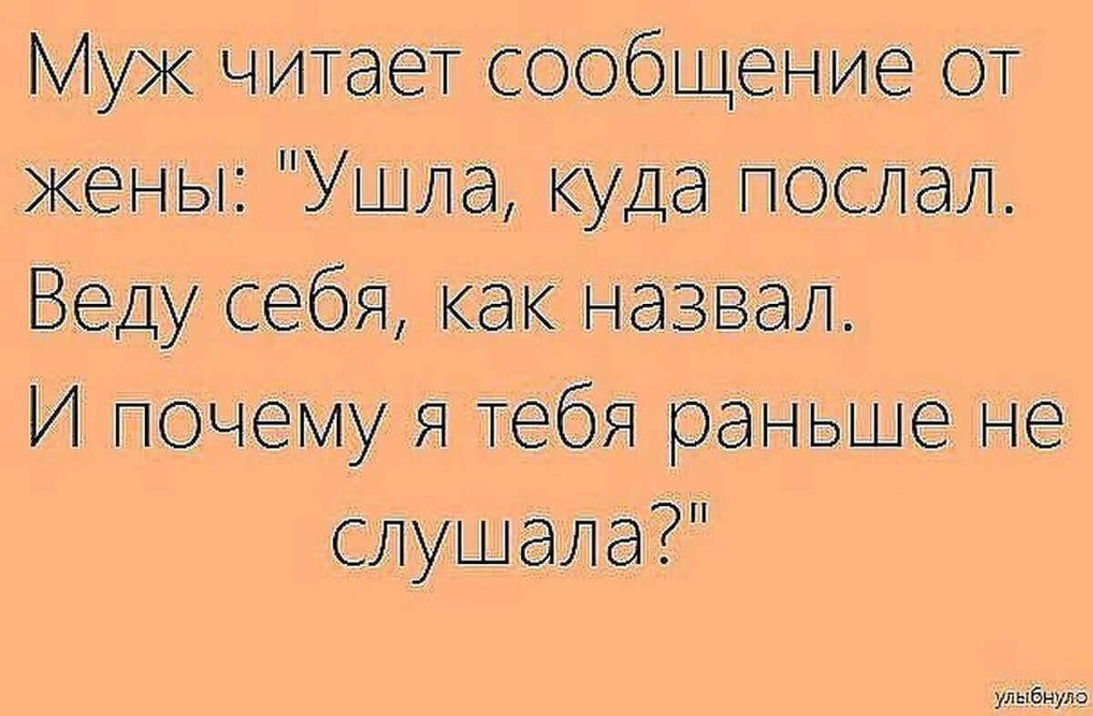 "Бро, ты мне лучше пока не звони. Понимаешь, мы сегодня со Светкой вроде как помирились. Вон в Турцию сейчас потихоньку собираемся. Малая на радостях аж скачет! Поэтому не хочу я в жене вновь драконищу будить! Прости, бро, но празднуй свою свободу без меня".