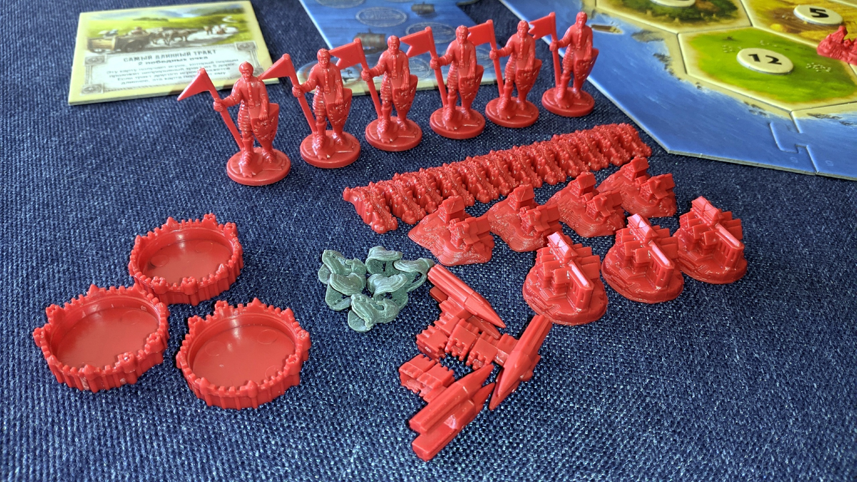 🟢 К сырью (древесина, глина, шерсть, руда, зерно) добавляются товары (бумага, монеты, ткань), добываемые, соответственно, с гексов древесины, руды и шерсти (только в случае, если у вас город. Иными словами, вам нужно будет брать не две карты сырья (две палки), а одну карту сырья и одну — товаров (палку и бумагу));
