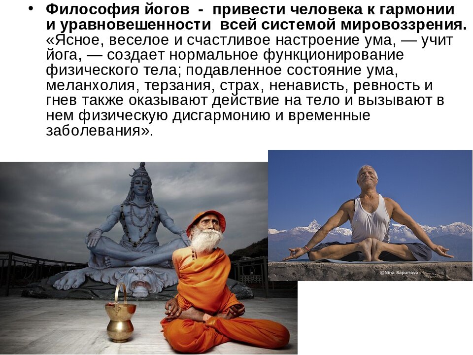 Йога - древняя практика, много различных направлений и последователей, известных и выдающихся. Я не имею такой самонадеянности, чтобы рассчитывать на бОльший успех, чем другие, но, как говорят " надо целиться в луну, чтобы в случае промаха, оказаться среди звёзд..." Частенько ученики, достигшие определенных успехов в йоге спрашивают инструктора:"Вот я скручиваясь в узел, выполняю сложные асаны, стою в позе "дерева" полчаса... А что же дальше?" Типа, я достиг потолка в йоге. Ещё раз вспомним Свами Сатчитананду и йога Сутры Патанджали, что такое йога, её цель. "Читта вритти ниродха" - обуздание волнений, присущих уму. Каждая наша мысль, воспоминание приводит ум в движение, меняет его, окрашивая зеркало ума в разные цвета. И асаны, и дыхательные практики призваны обеспечить конечную цель - опустошить ум, удержать от изменений, сделать его спокойным, неподвижным, войти в контакт с вашим истинным "я", к состоянию "нирбиджи", когда нет мысленных объектов сосредоточения. И это путь отправлени