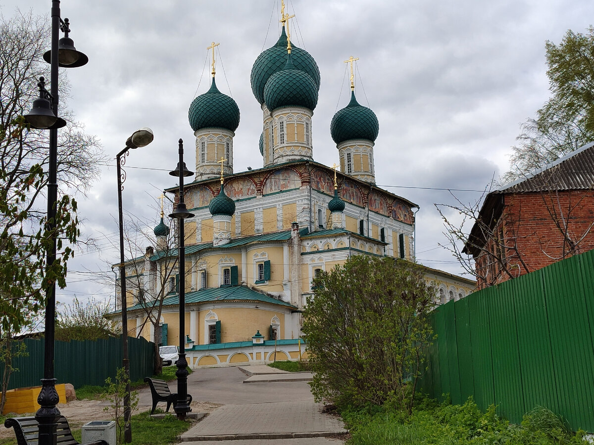 Зимой, в январские бодрые морозцы за минус тридцать, прогулялись по Романовской стороне Тутаева. В бодрые начало-майские +1 заехали на Борисоглебскую сторону. Зашли в музей Ушакова, купили жилетку на меху романовских овец и пошли к главному собору во всей округе. Воскресенскому собору. Собор огромный. Длина — 35 метров, ширина — 30 метров, высота до вершины креста — 49,68 метра. В Москве бы не затерялся. И старинный. 1652—1675 годы. По преданию, ранее здесь стояла деревянная церковь во имя князей-страстотерпцев Бориса и Глеба. По названию церкви стала называться и слобода. Собор невысокой оградой обнесен. Почти как монастырь. Якобы, вплоть до XVII века тут и находилась монашеская обитель. А существующая ограда- середина XIX века. И главное- никаких следов разрухи или новодела. Храм даже в советские годы не закрывался. Наоборот, даже кое- какая реставрация изредка проходила. Так что стоит в первозданном виде. Три с половиной века. Как на картине Кустодиева. Или на фотографии начала ХХ