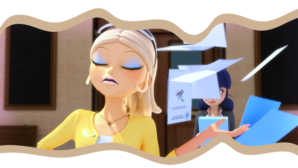 🎭 В серии "Плюшевый Злодей" девушка сорвала мастер-класс месье Дюпэна и подставила всех обучающихся коллежа. Адриан пригрозил, что не станет с ней больше общаться, если она не исправится. Дабы не утратить внимание парня к своей персоне, она сыграла роль хорошей девочки — позвала всех обучающихся на вечеринку, мило приветствовала гостей. Даже успела несколько раз выручить Леди Баг. Но как только Адриан пообещал, что продолжит с ней общение, Хлоя вновь принялась пакостить.