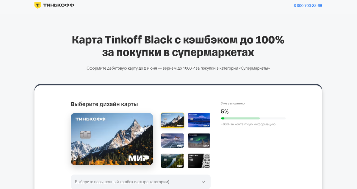 1. ТИНЬКОФФ - Дебетовая карта МИР BLACK