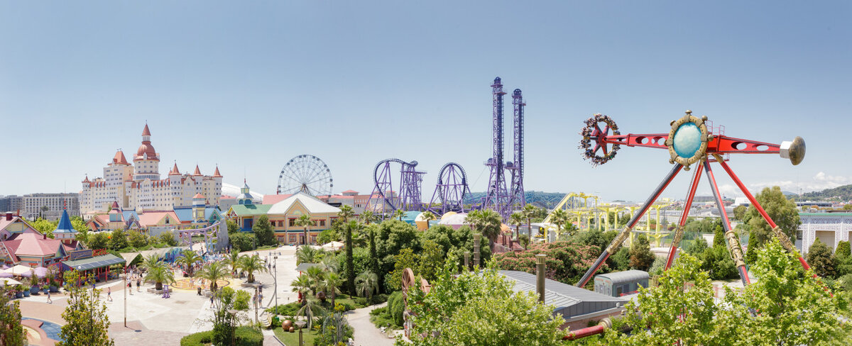 Если цель поездки именно аттракционы и шоу, то жилье в Адлере и тем более в самом Сочи не подойдет. Выбирайте гостиницу в поселке Сириус, где расположен «Сочи Парк». Ближайший к аттракционам отель — «Богатырь» 4*. Он находится в самом парке, посещение аттракционов входит в стоимость проживания. Также для гостей «Богатыря» работает открытый подогреваемый бассейн и за дополнительную плату — спа с комплексом парных. Конечно, у проживания на территории развлекательного парка есть особенность: ежедневно с 10:00 до 21:00 до отеля доносятся восторженные крики с американских горок и аттракционов свободного падения.