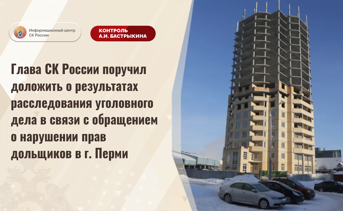 Глава СК России поручил доложить о результатах расследования уголовного дела в связи с обращением о нарушении прав дольщиков в г. Перми