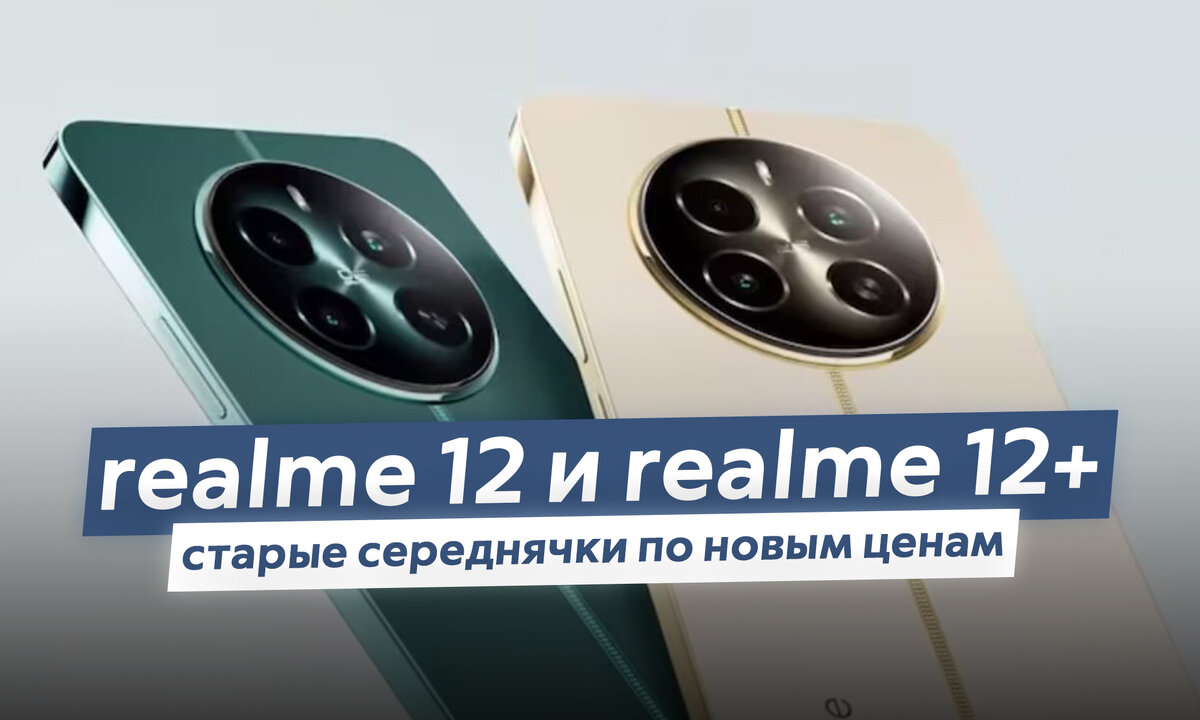 Привет, Дзен! До России доехали смартфоны realme 12 и realme 12+. Оба относятся к среднему сегменту и вроде как должны стать "ТОПами за свои деньги" для самой realme, но для российских расценок это звание неактуально. Что не так со смартфонами и почему на них взвинчены цены? Разберёмся в этом для каждой модели отдельно. realme 12 С базовой версией компания заморачиваться не стала: взяла за основу прошлогодний realme 11 5G, внесла в него пару мелких изменений, переименовала его и привезла к нам как новый смартфон. Он всё ещё работает на процессоре Dimensity 6100+ (до 2.2 ГГц, 410 тыс. в AnTuTu) и накопителе UFS 2.2, получил 120-герцевый IPS-дисплей 6.72" с типовой яркостью 800 нит, в состав его камер на спинке входят всё те же модули на 108 Мп (основной, размер 1/1.67", диафрагма f/1.8) и 2 Мп (глубина), а батарея ёмкостью 5000 мАч получила зарядку мощностью 45 Вт (в realme 11 было 67 Вт). Корпус полностью пластиковый, расцветки две — фиолетовая и зелёная, размеры и вес — 165.6 x 76.1 x