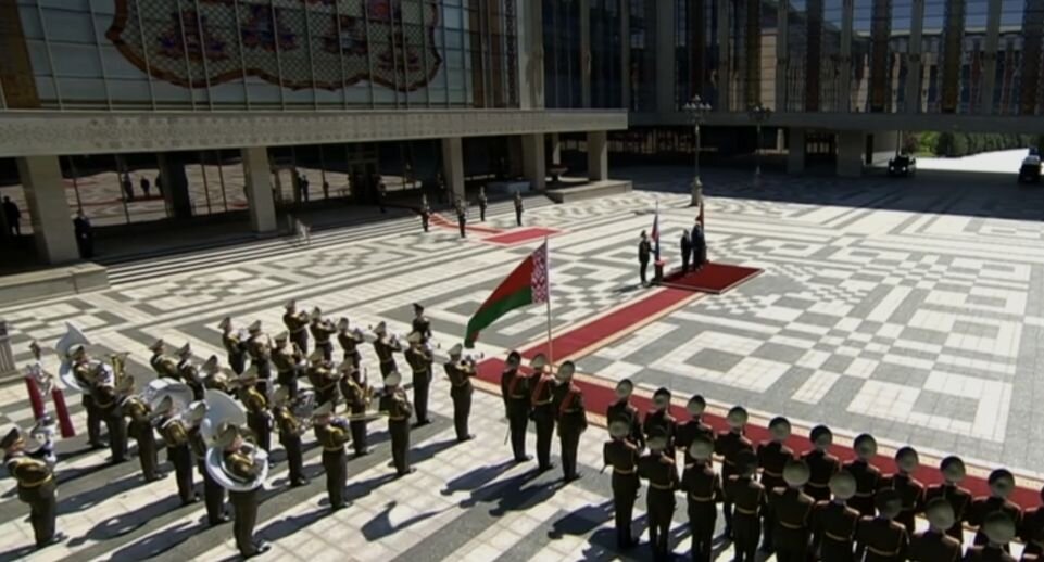 В Минске прошла церемония официальной встречи президента России Владимира Путина главой Белоруссии Александром Лукашенко. Переговоры лидеров пройдут во Дворце независимости, сообщила пресс-служба Кремля. Путин возложил венок к монументу Победы, установленному в 1954 году в память о победе в Великой Отечественной войне и о воинах Советской армии, а затем отправился к Дворцу независимости. На площади выстроился почетный караул, российского лидера встретил оркестр. Состоялась официальная встреча Путина и представление членов делегаций. Прозвучали гимны России и Белоруссии. Президент России прилетел в Минск 23 мая. Во время короткой встречи в аэропорту он обсудил с Лукашенко темы будущих переговоров. Путин заявил, что на повестку дня вынесут сотрудничество стран в торговле, энергетике, сельском хозяйстве, обеспечении безопасности и проведении второго этапа ядерных учений.