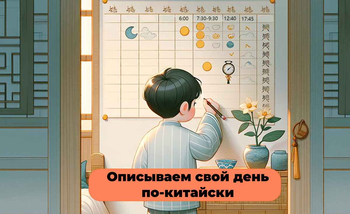 Чтобы описать свою повседневную рутину на китайском языке, необходимо знать основные фразы и слова, связанные с повседневной жизнью. В этой статье мы расскажем вам, как описывать свой день на китайском языке. Рассмотрим список необходимых слов и фраз, а также приведём пример описания одного дня. Необходимая лексика 1) Описание времени: 2) Фразы и глагольно-объектные конструкции для описания действий: Построение предложений Для описания своей рутинной деятельности на китайском языке, вам понадобится знать, как правильно строить предложения. В китайском языке предложения строятся по схеме: субъект-глагол-объект, подобно английскому языку. Например: Пример описания дня Давайте посмотрим, как можно описать свой день: 早上六点,我起床,然后去刷牙和洗脸。 ****[zǎoshàng liùdiǎn,wǒ qǐchuáng,ránhòu qù shuāyá hé xǐliǎn] — В шесть часов утра я встаю и иду чистить зубы и умываться. 七点我吃早餐。 [qīdiǎn wǒ chī zǎocān] — В семь часов я завтракаю. 早上我喜欢吃面包,喝咖啡。 [zǎoshàng wǒ xǐhuān chī miànbāo,hē kāfēi] — В семь часов я зав