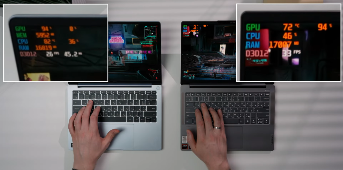 Ведущий YouTube-канала «Не шарю!» рассказал о новых топовых ноутбуках Lenovo Xiaoxin Pro 14 и RedmiBook Pro 14. Lenovo Xiaoxin Pro 14 оснащён новым процессором AMD Ryzen 7 8845H, Xiaomi RedmiBook Pro 14 — Intel Core Ultra 5 125H. Стоят они примерно одинаково, оперативной памяти в обоих случаях 32 ГБ, вес и размеры тоже у ноутбуков идентичны. При этом Levono с AMD чуть дешевле, имеет более яркий OLED-экран, чуть больше аккумулятор, поддержку Windows Hello (вместо сканера отпечатка пальцев), кардридера. Но, может, тогда Lenovo во всём лучше? В играх AMD и правда ведёт себя стабильнее и выдаёт больше FPS, но в Da Vinci выигрывает по скорости уже Intel. Блок питания у обоих ноутбуков на 100 Вт. При этом Lenovo имеет поддержку быстрой зарядки на 140 Вт. Оба устройства имеют металлический корпус, но у Redmi он кажется плотнее. Xiaomi RedmiBook Pro 14 имеет Thunderbolt 4, тогда как Lenovo Xiaoxin Pro 14 — полноценный кардридер и USB-C 4. Тачпад сделан у Lenovo из стекла, у Xiaomi — из пластик